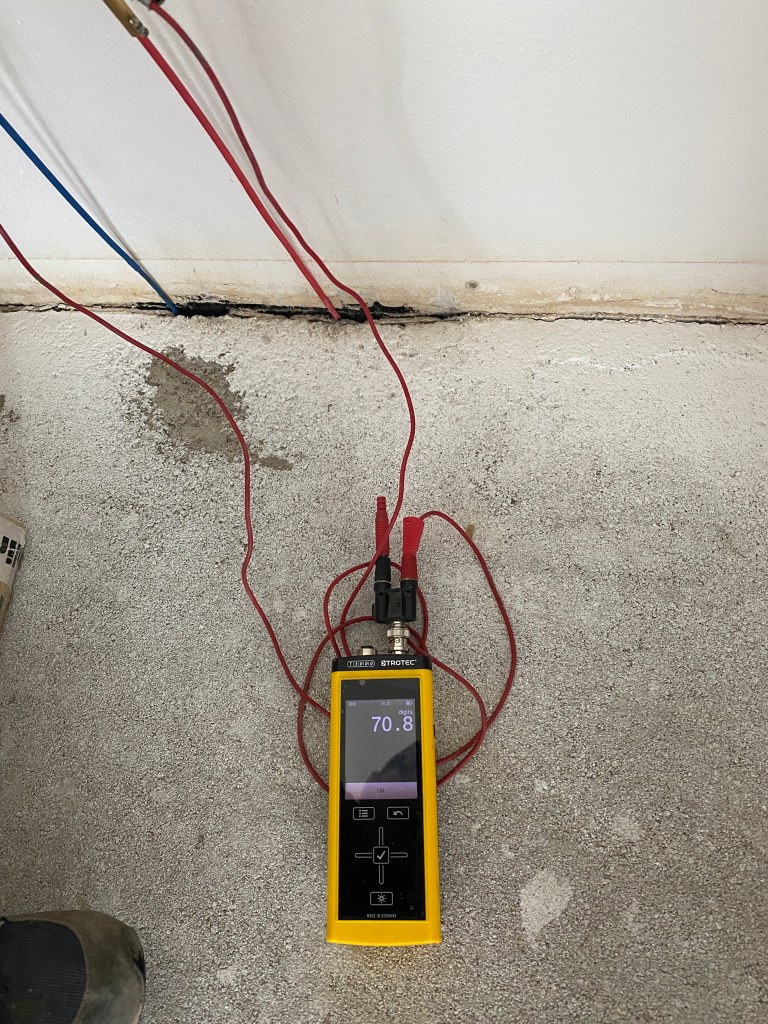 V průběhu vysoušení jsou prováděna kontrolní měření vlhkosti. Dle výsledků jsou prováděny úpravy instalace a doba vysoušení.
