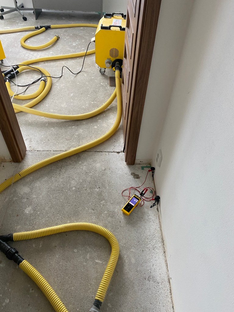 V prostoru rodinného domu na Chomutovsku došlo k zatečení vody do konstrukce podlah celého domu. Vzhledem ke skutečnosti, že se jedná o dřevěnou konstrukci stavby je nutné vždy provedení technického vysoušení.
